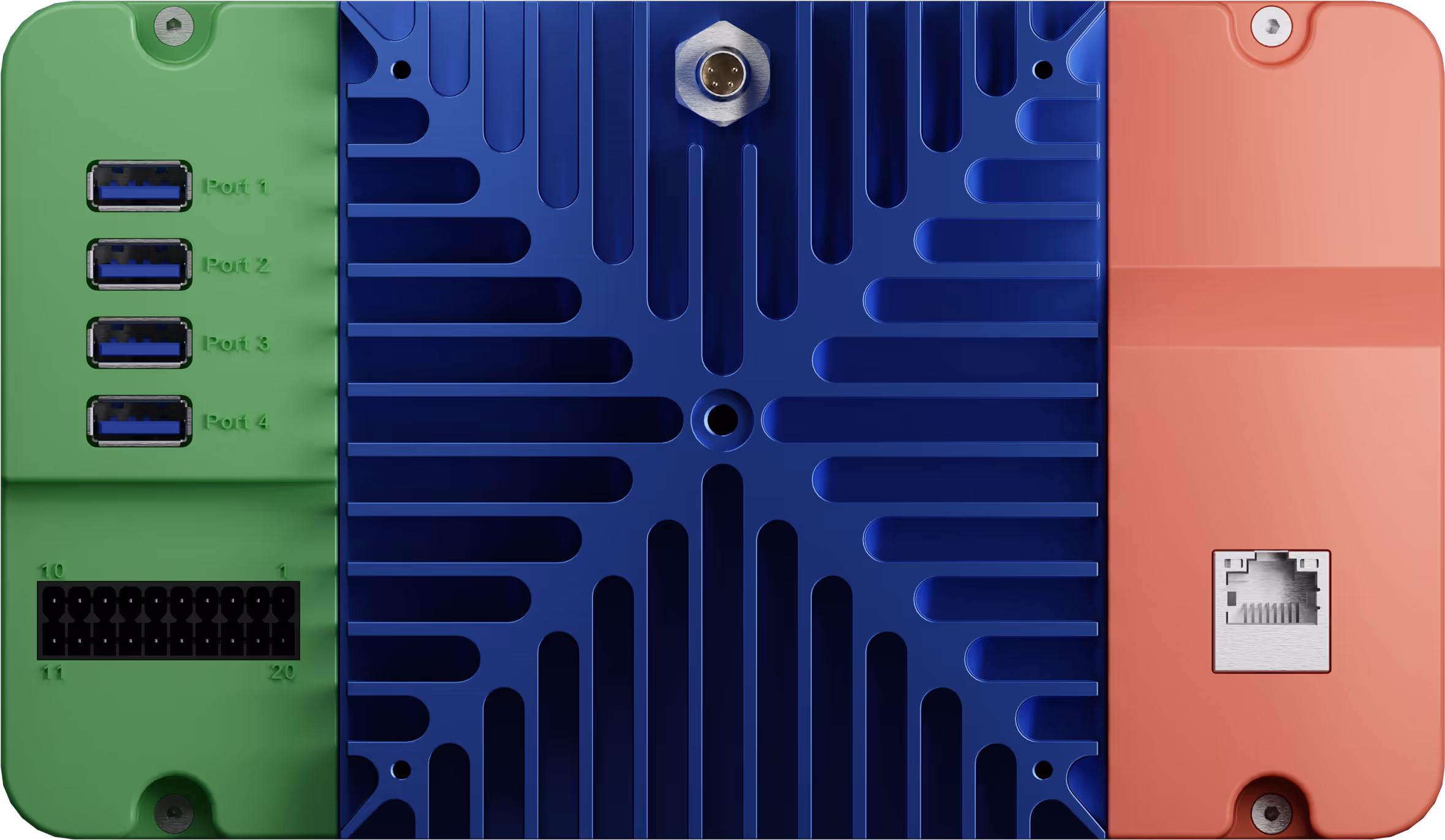 Often used for safety applications, Blox_V can connect up to 4 cameras to create a 360° view around the vehicle.